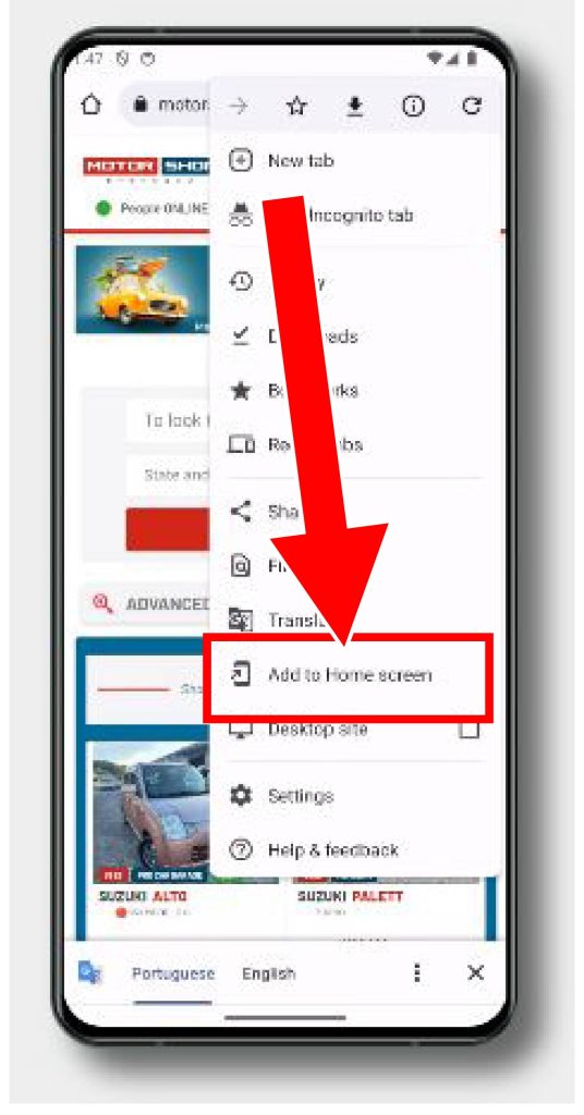 Um menu é exibido. Toque em Adicionar à tela inicial.