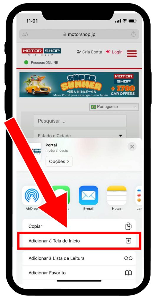Abra o navegador SAFARI no seu iPhone. Copie e cole o seguinte link;